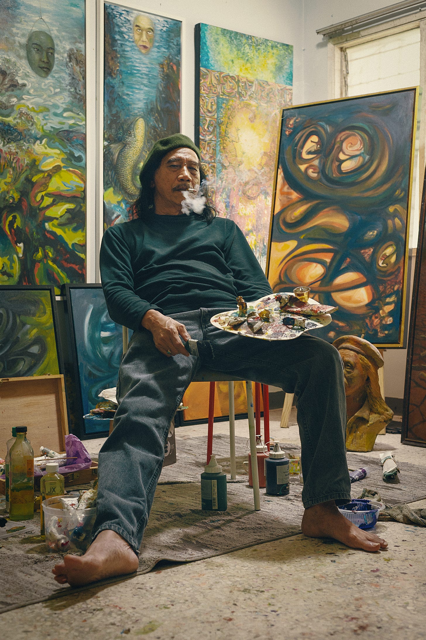 This image was taken at his gallery when he asked me to photograph him in my own style. It was an advantage for me because I’ve known him for 13 years and he also gave me his best pose for this image. The thing is, when I'm working with artists, painters or celebrities, I always keep talking with them. Communication is a must. Be free, make them happy, and let their expression go easily. This image tells us that Art has no limitations.
